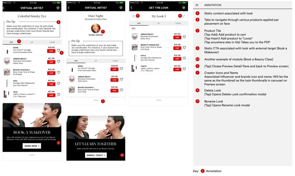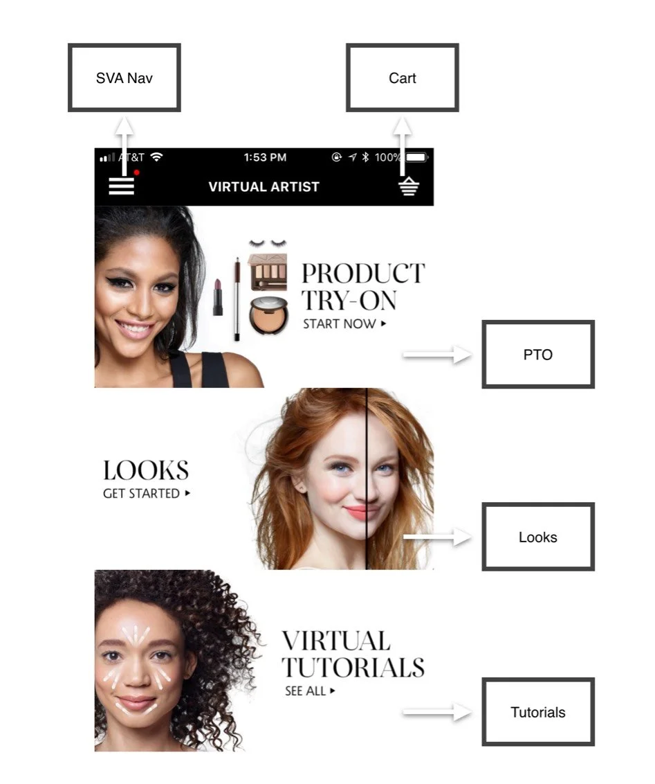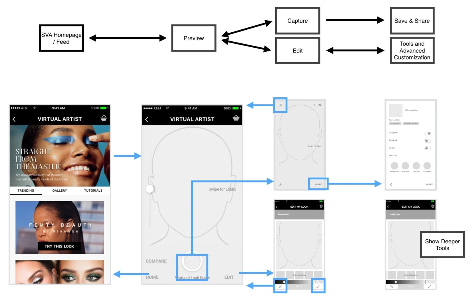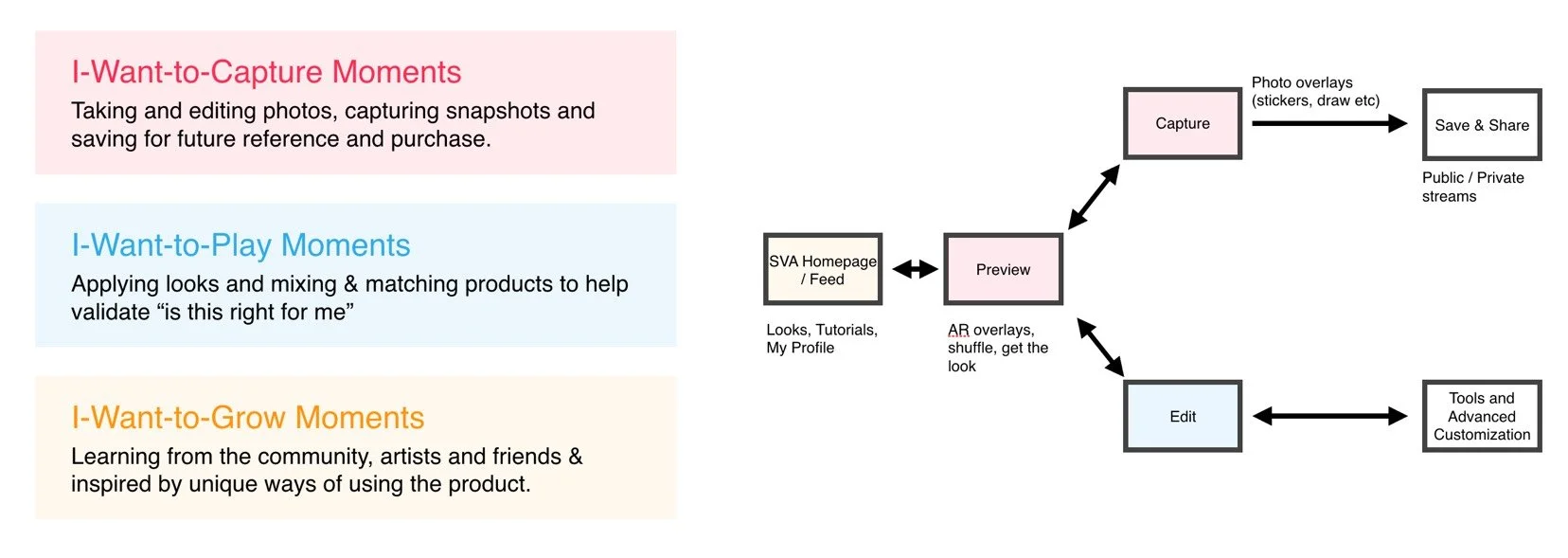 Newly developed flows adapting micro-moments for the Sephora virtual app to guide the end user’s experience.