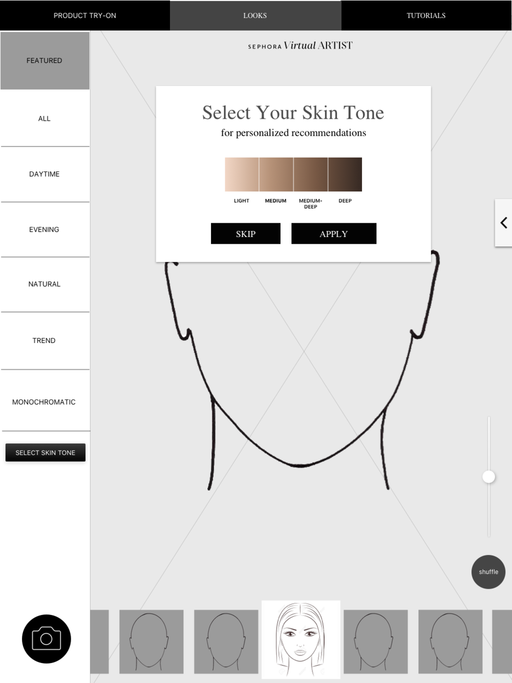 Whether you are looking for a new shadow or lip shade, color selection is a critical component to the success of the Product Try-On experience. Hence explored several ways customers could shuffle through different shades across different product types.