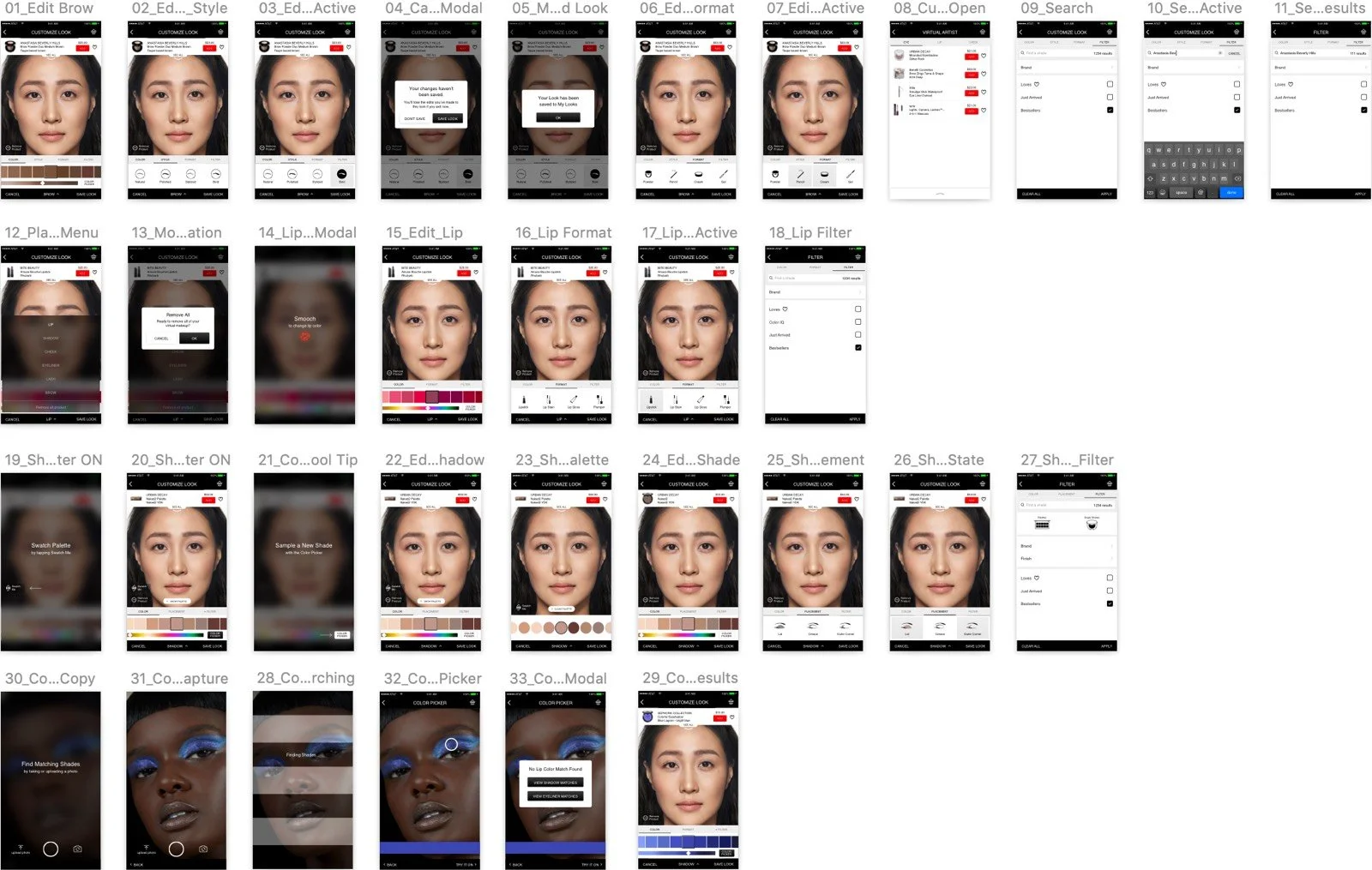 As part of the 5.0 effort, I worked alongside with team and led the research and design strategy to built upon our previous work to improve the overall user experience while integrating new product features: color matching, saving looks, social sharing, new tutorials, and improved purchasing experience for products directly through the app.